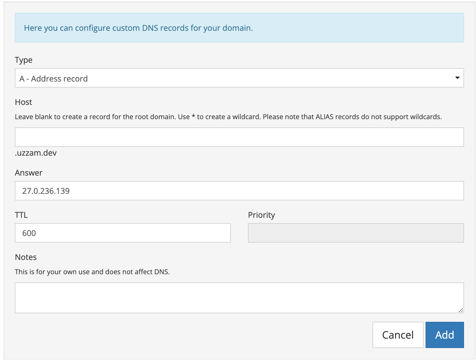 과거에 gastby 블로그 운영하면서 porkbun에서 uzzam.dev 도메인을 샀었다.